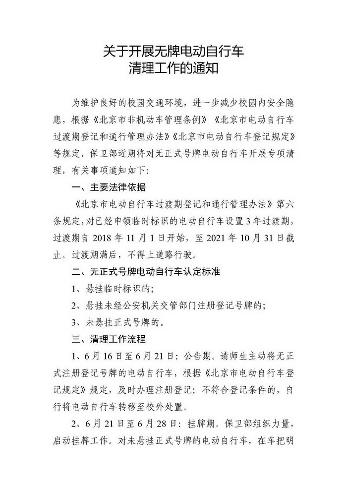 关于开展无牌电动自行车清理工作的通知