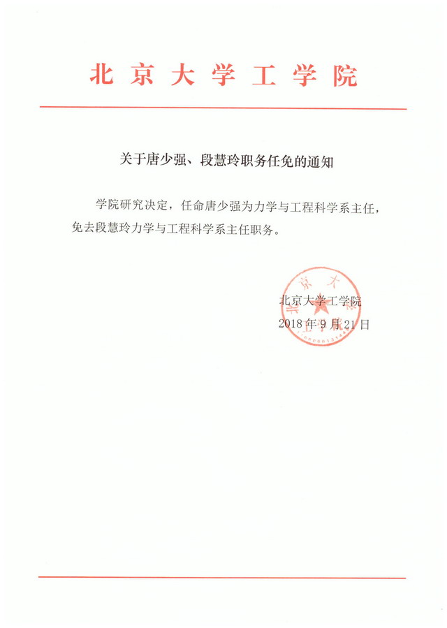 关于唐少强段慧玲职务任免的通知