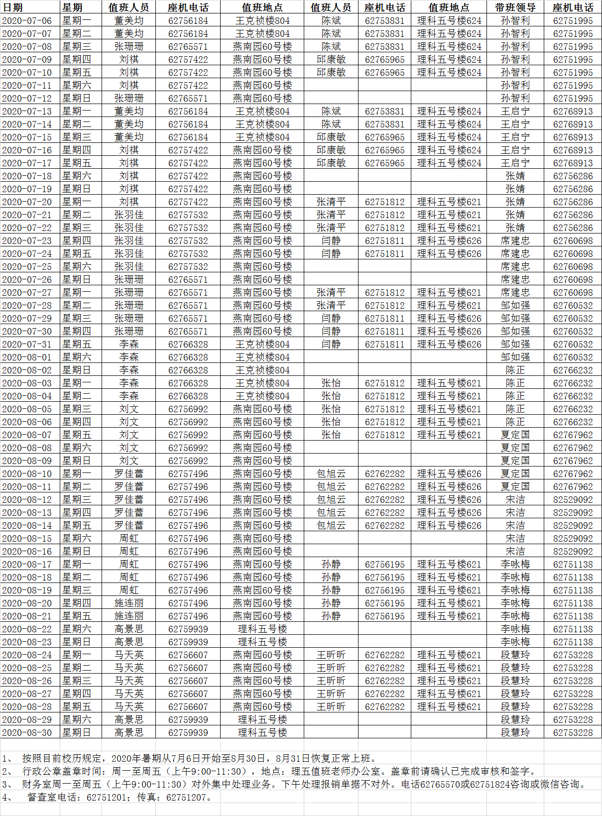 公司暑假值班安排表