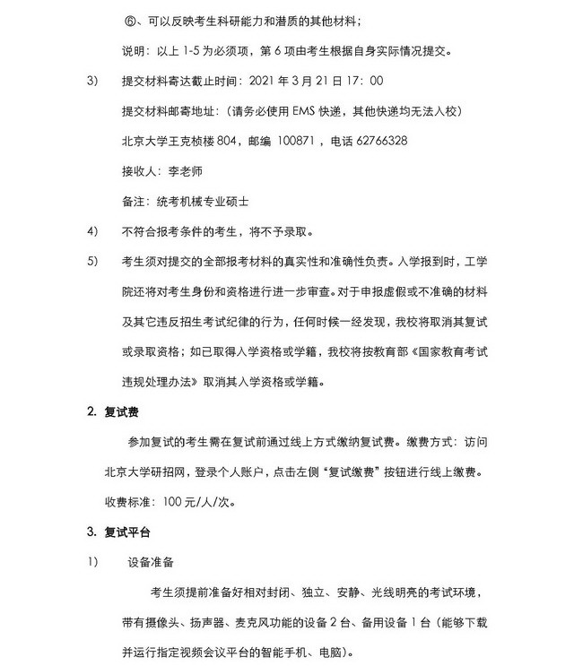 william威廉中文官网2021年统招机械专业硕士复试细则(附考生名单)