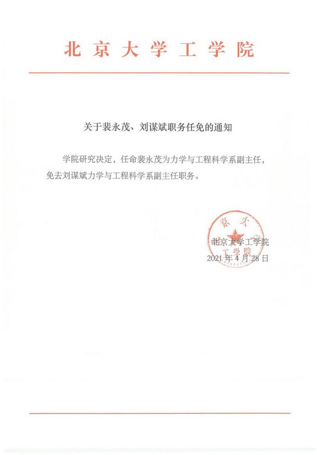 关于裴永茂、刘谋斌职务任免的通知