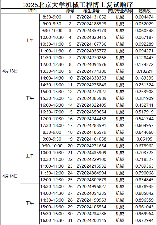 (1)请依照抽签的复试顺序(复试顺序将邮件告知),于复试当天在新奥工学大楼1层大厅进行身份审查,上午:7:50-8:20,下午:12:50-13:20。