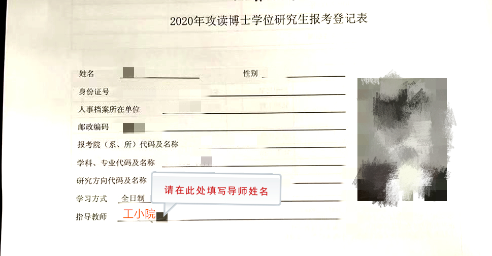 2) 请在williamhill英国官网2020年攻读博士学位研究生报到登记表首页指导教师处自行填写意向导师姓名,如下图所示(报名系统不用填写导师);
