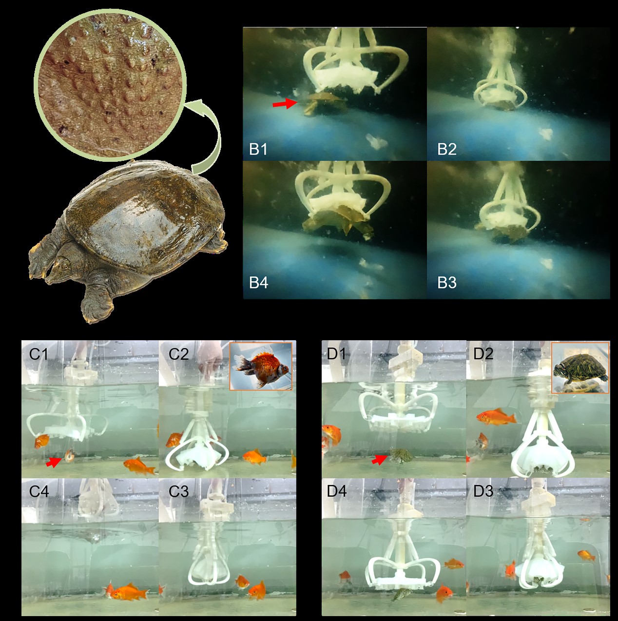 抓取手在水下对三种动物进行无损抓取