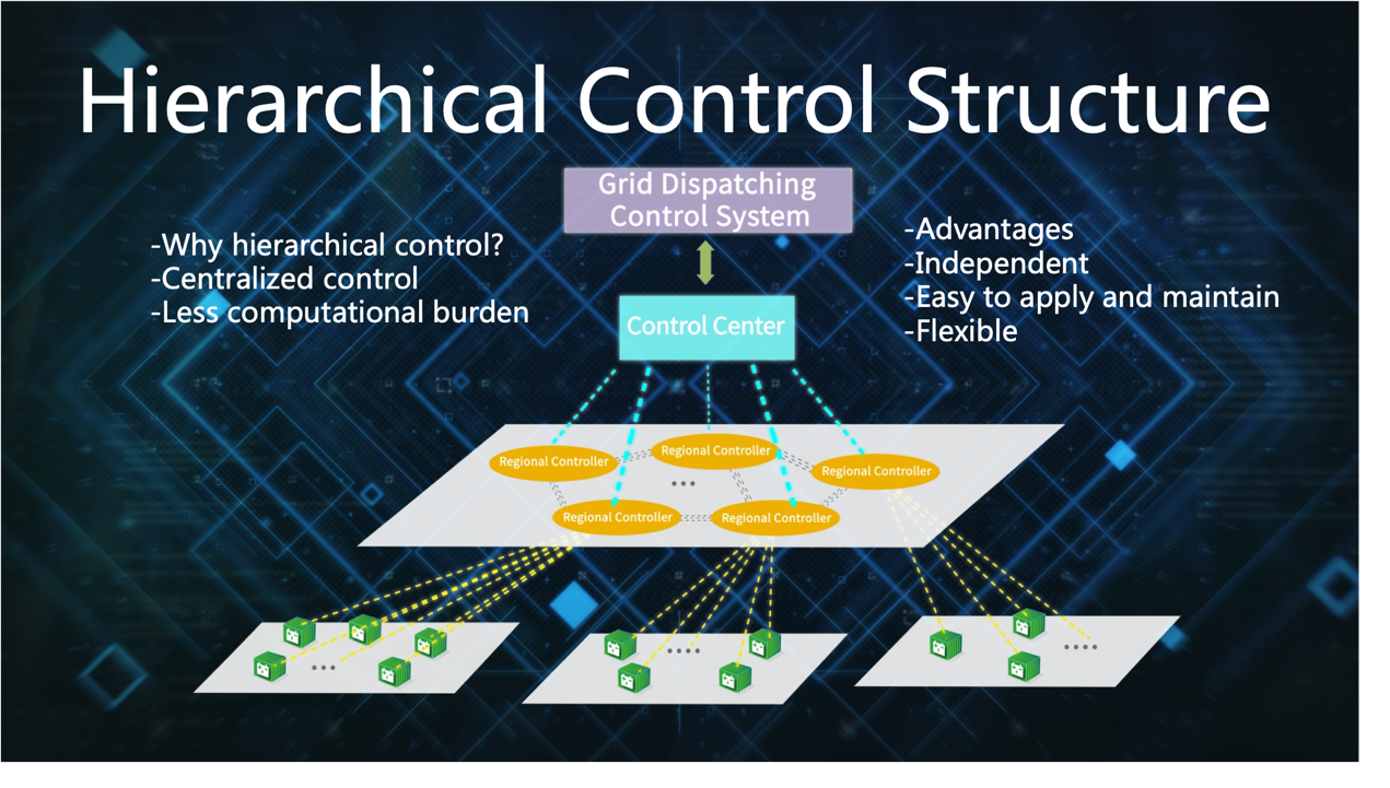 为解决分布式储能参与电网频率调节的问题,宋洁教授团队创新性地结合集中式与分布式架构的优势,基于电力大数据以及物联网技术提出了分层式储能优化控制架构,并通过一致性控制算法调度不同区域下的分布式储能系统参与电网调频,在实际运营过程中通过考虑储能老化的经济性评估从而优化储能的充放电策略。