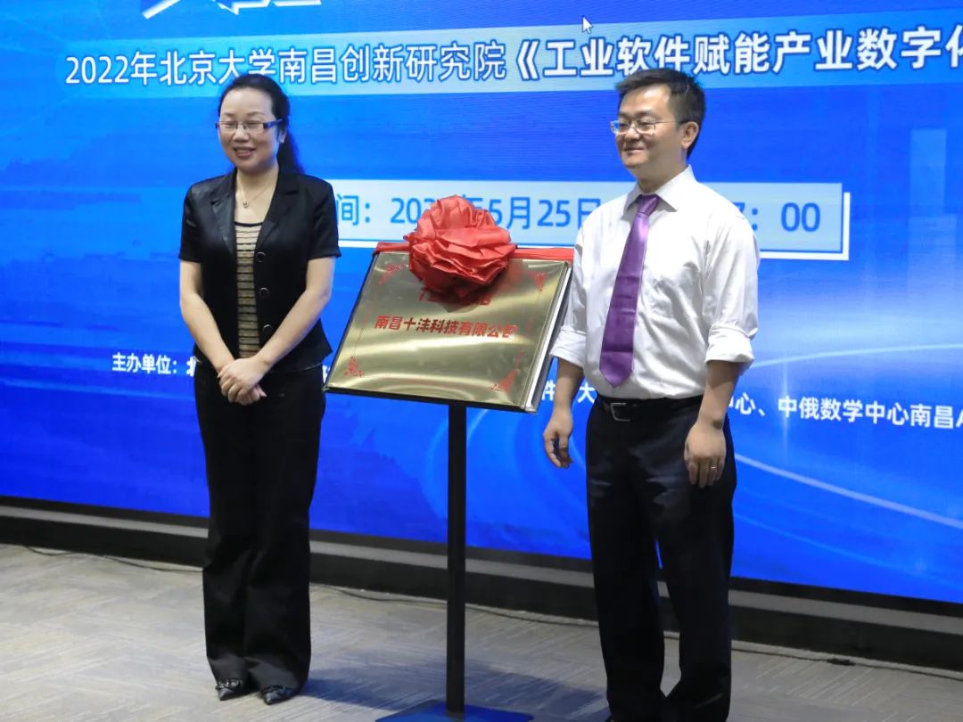研究院与深圳十沣科技有限公司共同孵化的南昌十沣科技有限公司揭牌仪式也在今日的活动现场举行。深圳十沣科技有限公司致力于高端工业软件、数字孪生系统与云服务平台自主研发及产业化,历经十年技术孵化与拓展,深圳十沣已成为国内领先的工业软件、工程仿真云服务平台提供商与技术服务商。研究院在2021年与深圳十沣签署了战略合作协议,随着南昌十沣科技有限公司的正式成立,预示着研究院将为南昌市加快工业软件赋能产业数字化转型升级注入新动能,为支撑江西省乃至国家的经济高质量发展添砖加瓦。揭牌仪式结束后,参会领导与专家学者上台合影,共同记录下这值得纪念的一刻。