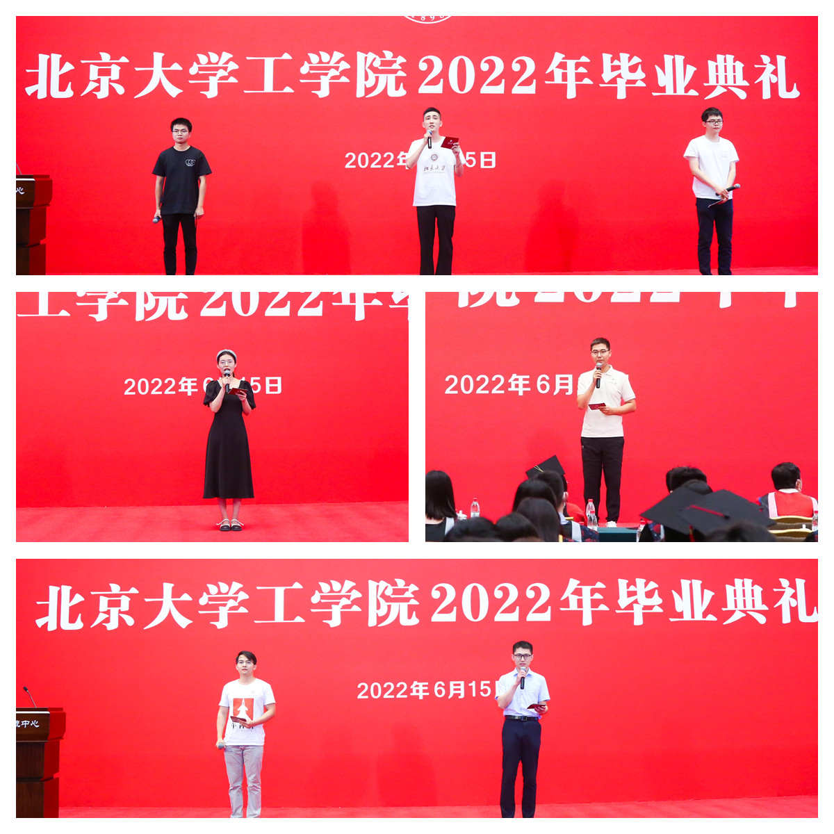 在名为“感恩”的环节,同学们通过“勇攀科研高峰” “紧贴时代脉搏” “到祖国最需要的地方”三个篇章,讲述了他们的青春故事。朱昱东分享了《工学人的“㶲”》,他希望“把从工学中汲取的能量转化成服务社会的‘㶲’,作为北大学子更当肩负时代使命,成长为建设祖国的有用之才,学以致用,大有作‘㶲’!”;张仕琦分享了《人生的“鲁棒性”》, 他直面科研之路上的迷茫彷徨、荆棘坎坷,未曾动摇信心与坚持,在控制中的“鲁棒性”原理中获取灵感,找到了“在对抗不确定性和干扰时的稳定性”最优解,最终取得了优秀的科研成果;张天昊以《工学“常为新”》为题进行分享,在国家建设海洋强国的重大战略需求下,为了突破传统航行器机动性笨拙且隐蔽性较差的难点,他求索创新,运用交叉的学科方法,终于取得突破性进展,描绘出一幅“传递着创新技术与自然和谐共融”的画面,将北大“常为新”的精神生动演绎;张慧敏分享了《创新·菁英》,作为william威廉中文官网创新菁英班的硕士,她用科研和实践将“创新”定义为“把握时代脉搏,与祖国同心同向同行”,将“菁英”定义为“扎根社区,服务社会,勇于奉献”,在这个过程中,也找到了人生的答案;张驰在《载工学初心,行远山长路》中和现场师生分享了自己在“爱国、励志、求真、力行”成长路上的工学印记,在亦学亦行的实践路上,他认清了“工业强,百业强”的真理,并将投身祖国碳中和事业勇毅前行,带着北大精神走向五湖四海,阔步广袤天地;蒋昕鹏的《选调生的队伍里,必须有我》分享中,大家一起见证了他追随初心的庄重承诺,在奔赴各地用青春书写基层壮丽诗篇的北大人身上,他看到了奉献的价值与自己人生的方向,未来乡村的振兴和人民的幸福将是他始终不变的向往;于佳明分享了《筑梦国之重器,偶然中的必然选择》,一个偶然,一生必然,在工学的文化熏陶和老师的言传身教下,他的个人事业与国家需求实现同频共振,未来他将 “奔赴祖国最需要的地方,铸国防基石,做民族脊梁!” 岁月不居,时节如流,随着一位位同学的精彩讲述,同学们“与时代脉搏同频共振、于科研之海奋勇搏击、扎根祖国大地绘就精彩人生”的青春画卷在大家面前徐徐展开,这也是北大工学赋予每位毕业生最珍贵的行囊。