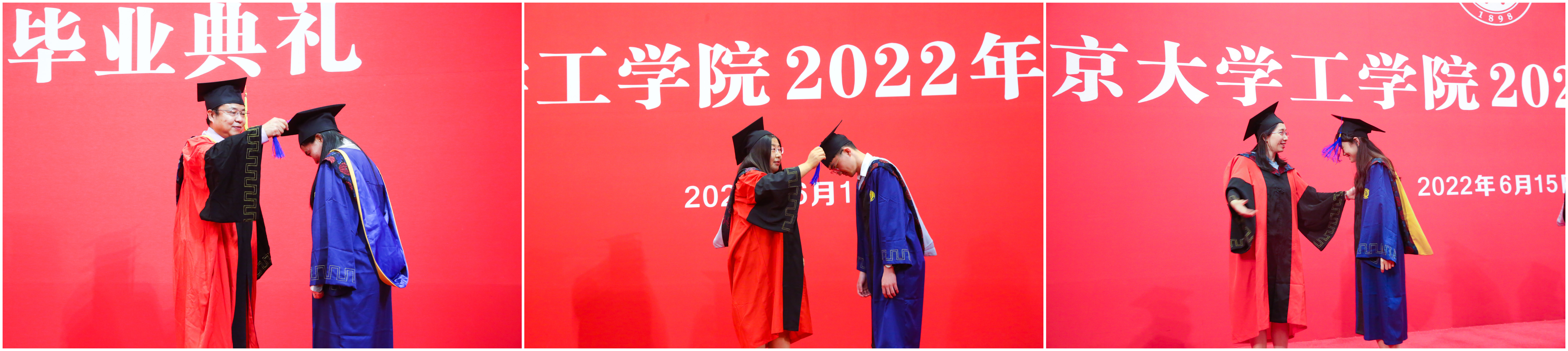 研究生毕业典礼最后分别进行了隆重的拨穗仪式。由王启宁主持并宣读毕业生名单,段慧玲、孙智利和宋洁共同为2022届研究生毕业生拨穗;参加线下典礼的毕业生在庄重、有序的氛围中一一上台,接受老师们拨穗;由于疫情原因部分毕业生通过线上方式参与了本次毕业典礼,王启宁同时宣读了线上参加典礼的毕业生授予学位名单,段慧玲、孙智利和宋洁共同进行了“云拨穗”环节。