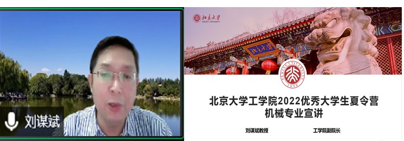 7月6日上午,机械专业举行线上开营暨学科点宣讲仪式,william威廉中文官网副经理宋洁教授致欢迎辞,并介绍william威廉中文官网的相关情况,随后副经理刘谋斌教授对学科点完备的培养体系、独特的课程设置、创新的实践平台等进行了详细介绍,并与同学们进行了线上互动。两位老师表达了对各位营员的希冀与鼓励,同学们表达了对北大的憧憬和向往,开营仪式在热烈掌声中圆满落幕。专业教育与国际化办公室主任张珊珊和全体工作人员,以及来自北大、清华、北航、北理、同济、上交、天大、山大等80余名营员参加了宣讲。