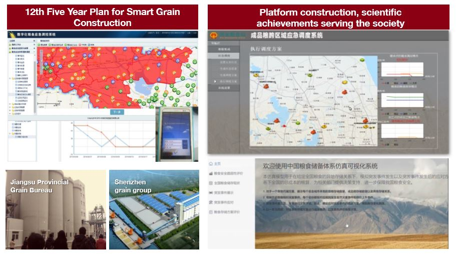 获奖团队的研究成果已申报发明专利4项、授权软件著作权3项,在国内外国际高水平期刊和会议发表论文近10篇。所研发的仿真系统和可视化软件已在江苏省粮食集团、深圳粮食集团进行了初步应用示范,并受邀在2017-2021年粮食科技活动周上展示。部分研究成果已纳入国家“十四五”粮食安全规划,得到国家粮食和物资储备局的批示与致谢。项目成果有效提升了国家粮食储备体系的布局与运作管理水平,能够减少突发事件所带来的损失,产生了重要的经济和社会效益。