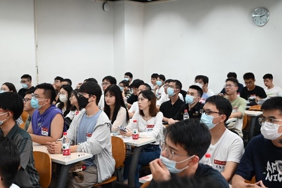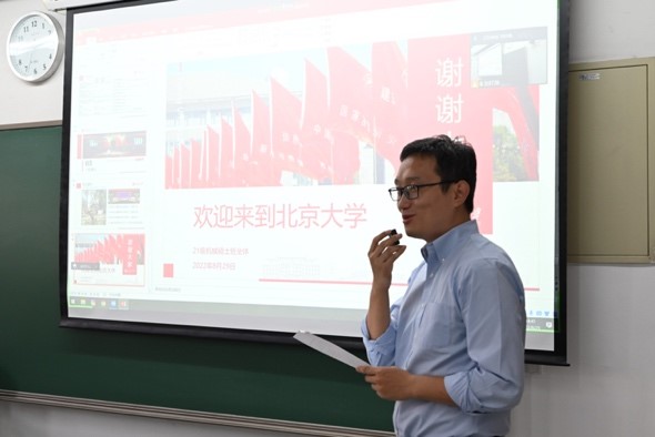 随后,21级机械硕士学长刘轩渤为新生们分享了北大校园生活和个人学习的心得,学长表达了对新生们校园生活的美好祝愿,并向大家展示了往届同学的科研成果和课余生活,鼓励新同学们要不断探索和尝试,做有志向有担当的北大学子。