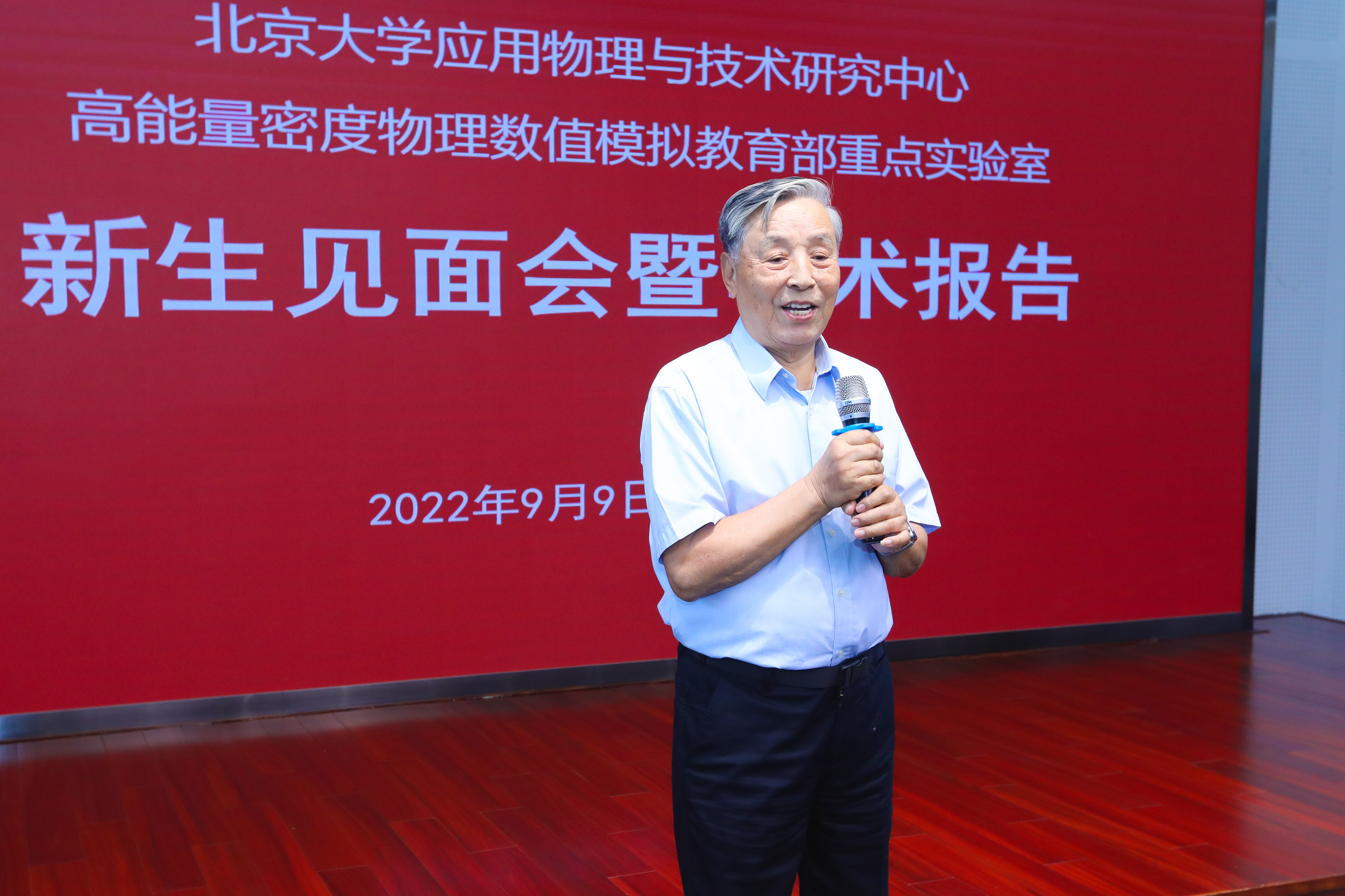 会议伊始,中心荣誉主任贺贤土院士发言,他首先对加入中心的新同学表示热烈欢迎,并介绍了中心的主要研究方向和我国在高能量密度科学领域的研究进展及发展前景。贺院士勉励大家将自己的科研追求与民族命运相结合,做好攻坚克难的准备,积极开拓新思路。他指出,中心肩负着服务于国家重大需求的责任和使命,寄语各位同学在科学探索的道路上,要执着追求、坚持科学的真理,砥砺前行,将科研成果转化为科技力量助力国家建设。