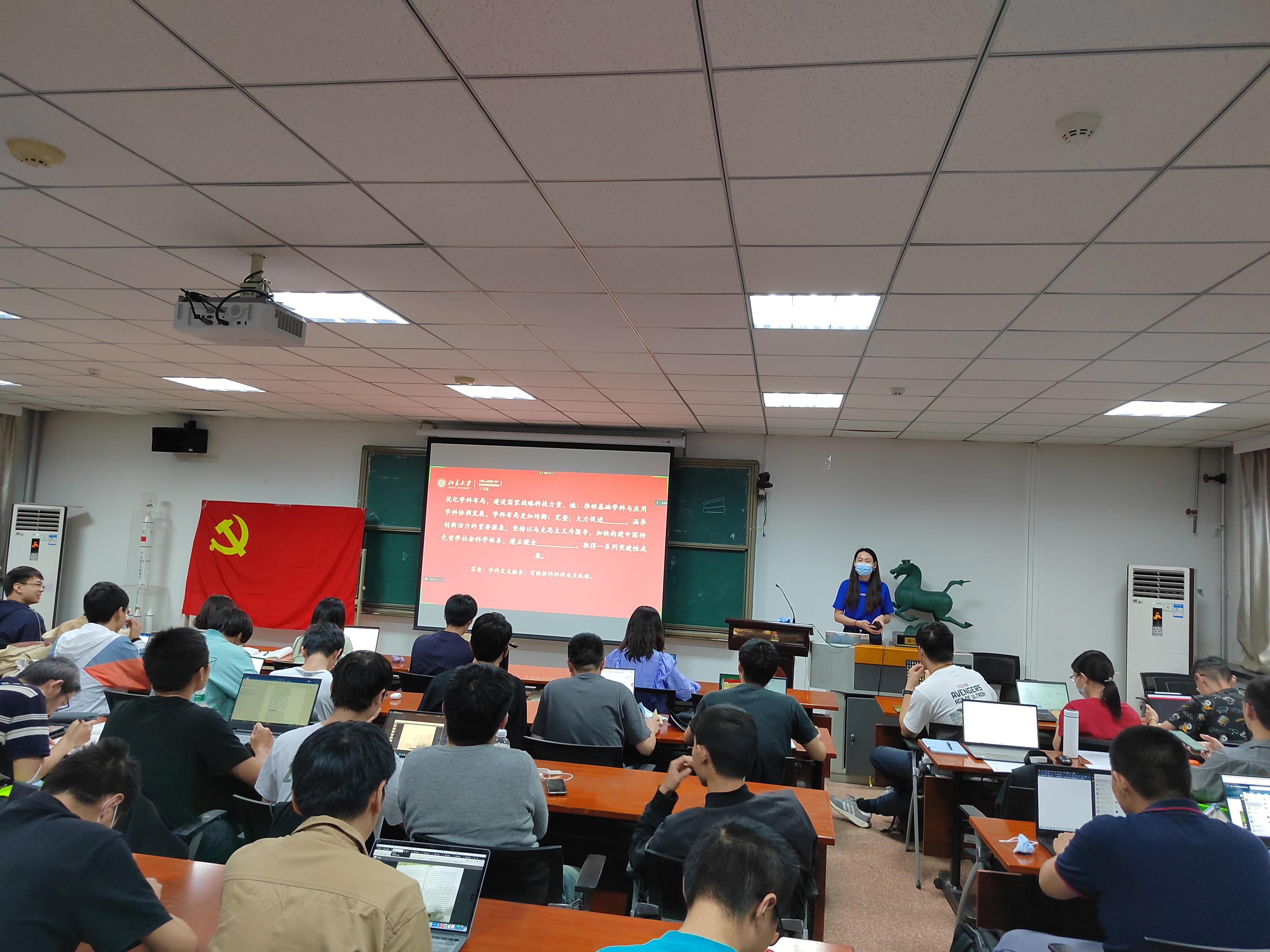 小组汇报展示后,领队辅导员吴悦童组织学员开展williamhill英国官网第十四次党代会主题知识竞赛,进一步检验学员的学习成果。知识竞赛的设题紧密围绕习近平总书记关于教育和北大工作的重要论述精神,紧密聚焦“十四五”建设规划和“新工科”建设等重点问题,帮助学员增进相关问题的关键知识。学员们积极参与、争先抢答,体现了良好的学习成效。
