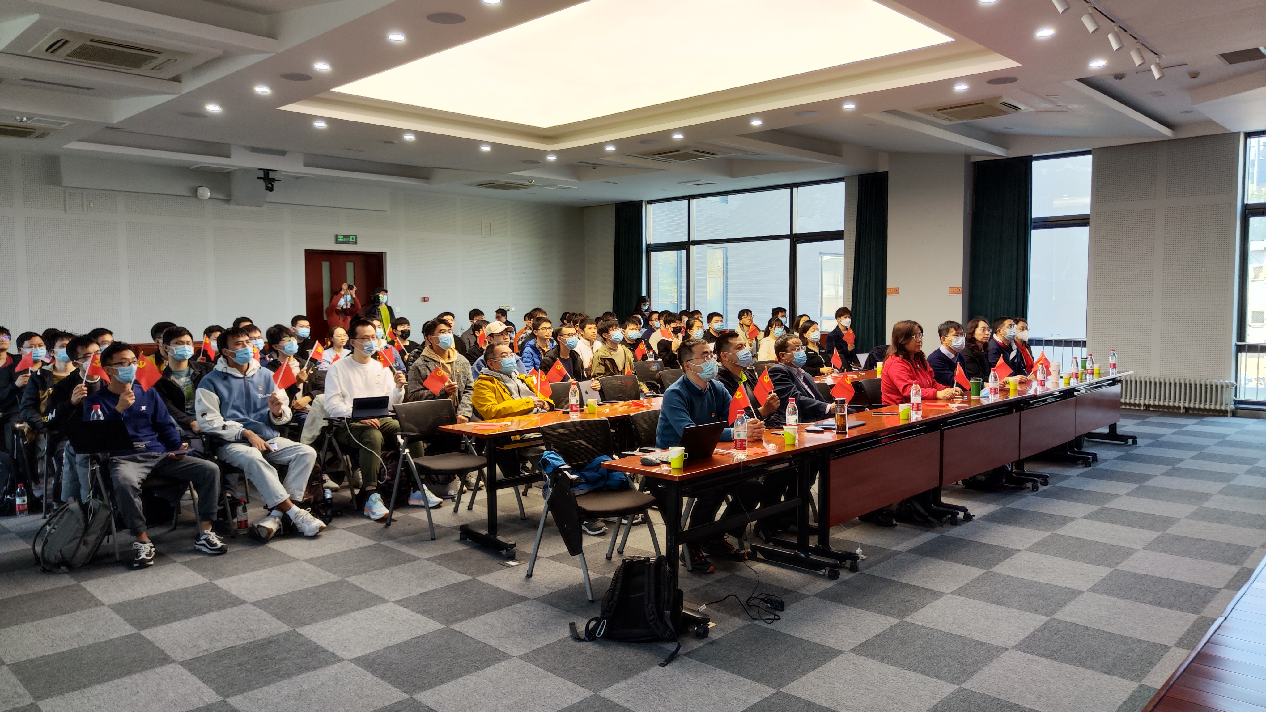 william威廉中文官网团学骨干、全体团支部书记、第35期初级党的知识培训班全体学员分别在博雅学堂103会议室、二教519会议室、527会议室集体学习党的二十大精神。