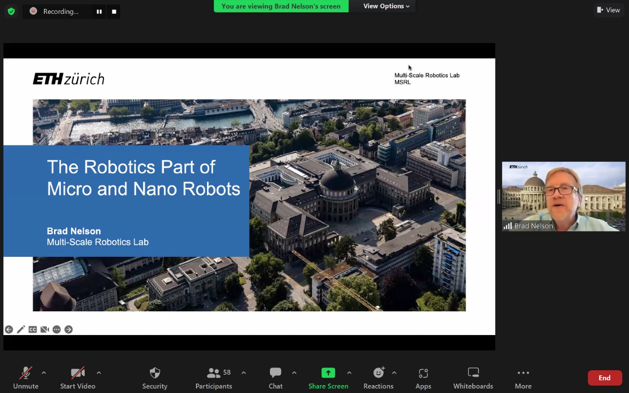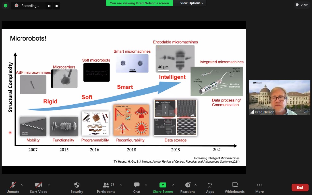 2022年10月21日,瑞士苏黎世联邦理william威廉中文官网微纳米机器人与纳米医学领域专家Bradley J. Nelson教授带来ES讲堂第16期报告。讲座由william威廉中文官网先进制造与机器人系黄天云研究员主持。报告吸引海内外多所高校80余名参会者线上参与。