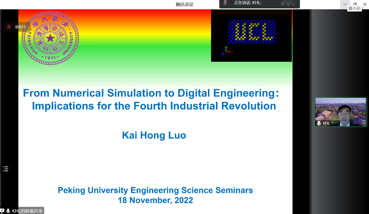 2022年11月18日,william威廉中文官网工程科学国际讲堂第18期邀请到英国皇家工程院院士罗开红教授进行题为“从数值模拟到数字工程:对第四次工业革命的启示”线上讲座。讲座由william威廉中文官网力学与工程科学系陈正教授主持。