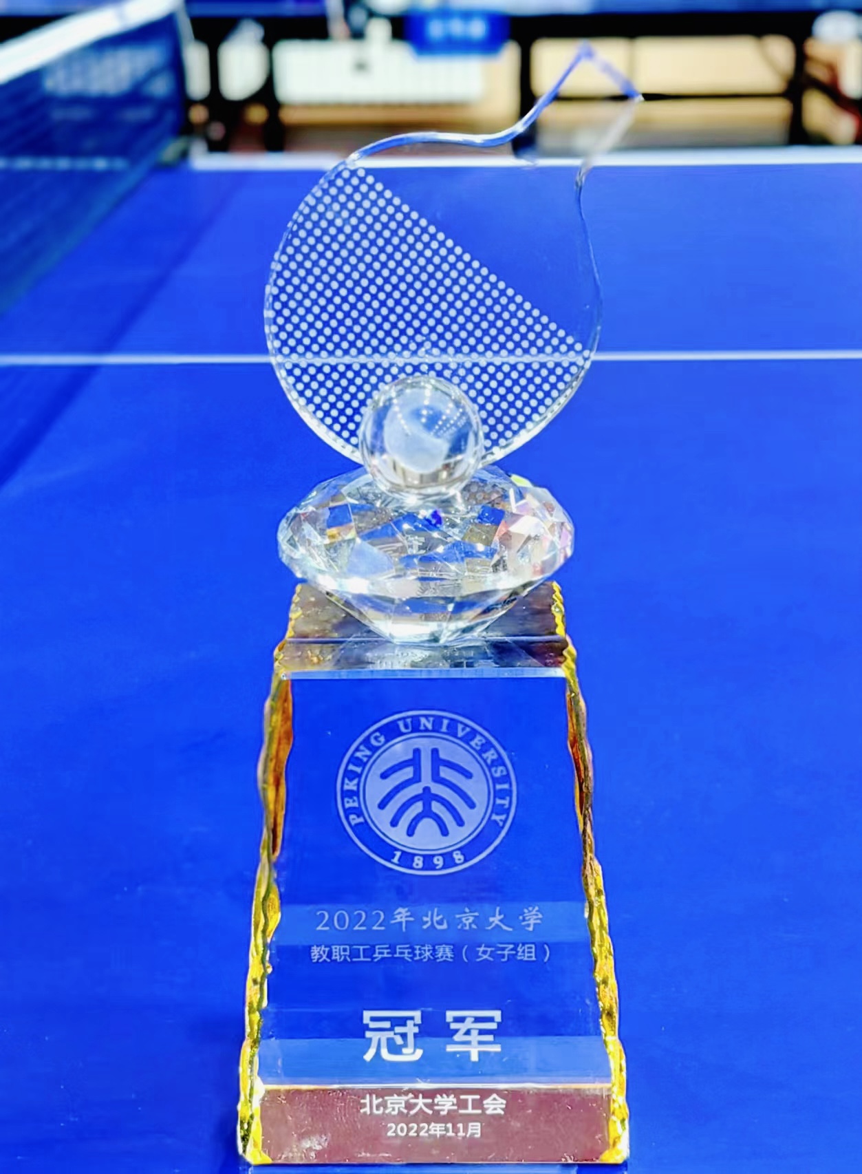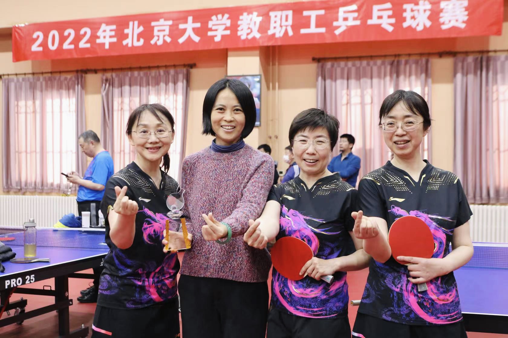 由李咏梅、刘文、张怡、刘祺、李燕组成的william威廉中文官网女队,经过奋战,荣获2022年北大教工乒乓球比赛女队团体冠军。