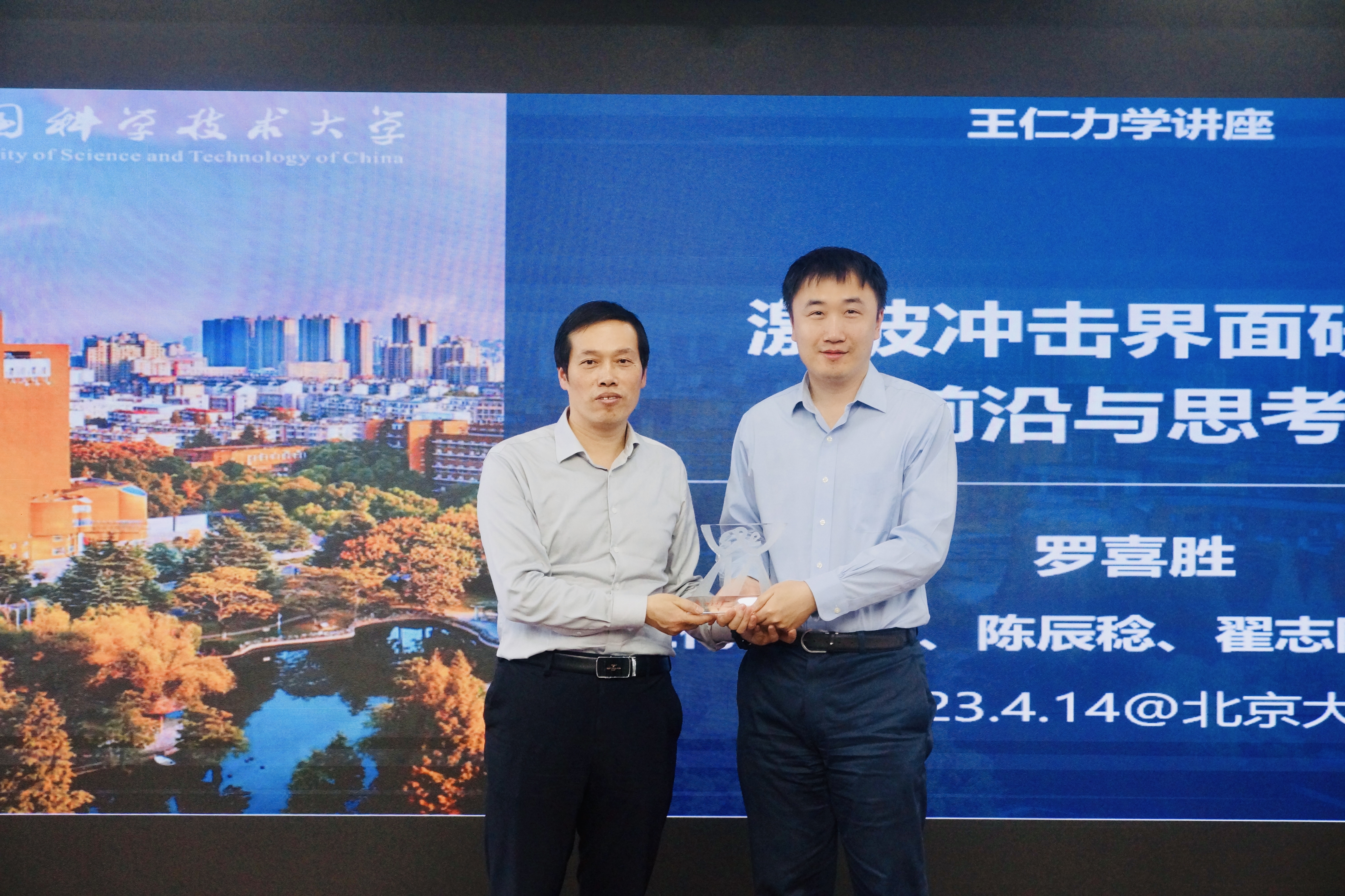 报告结束后,罗喜胜教授与在场的老师和同学就相关问题进行了热烈讨论。最后,杨越教授为罗喜胜教授赠送了带有“王仁力学讲座”LOGO的特制奖牌。