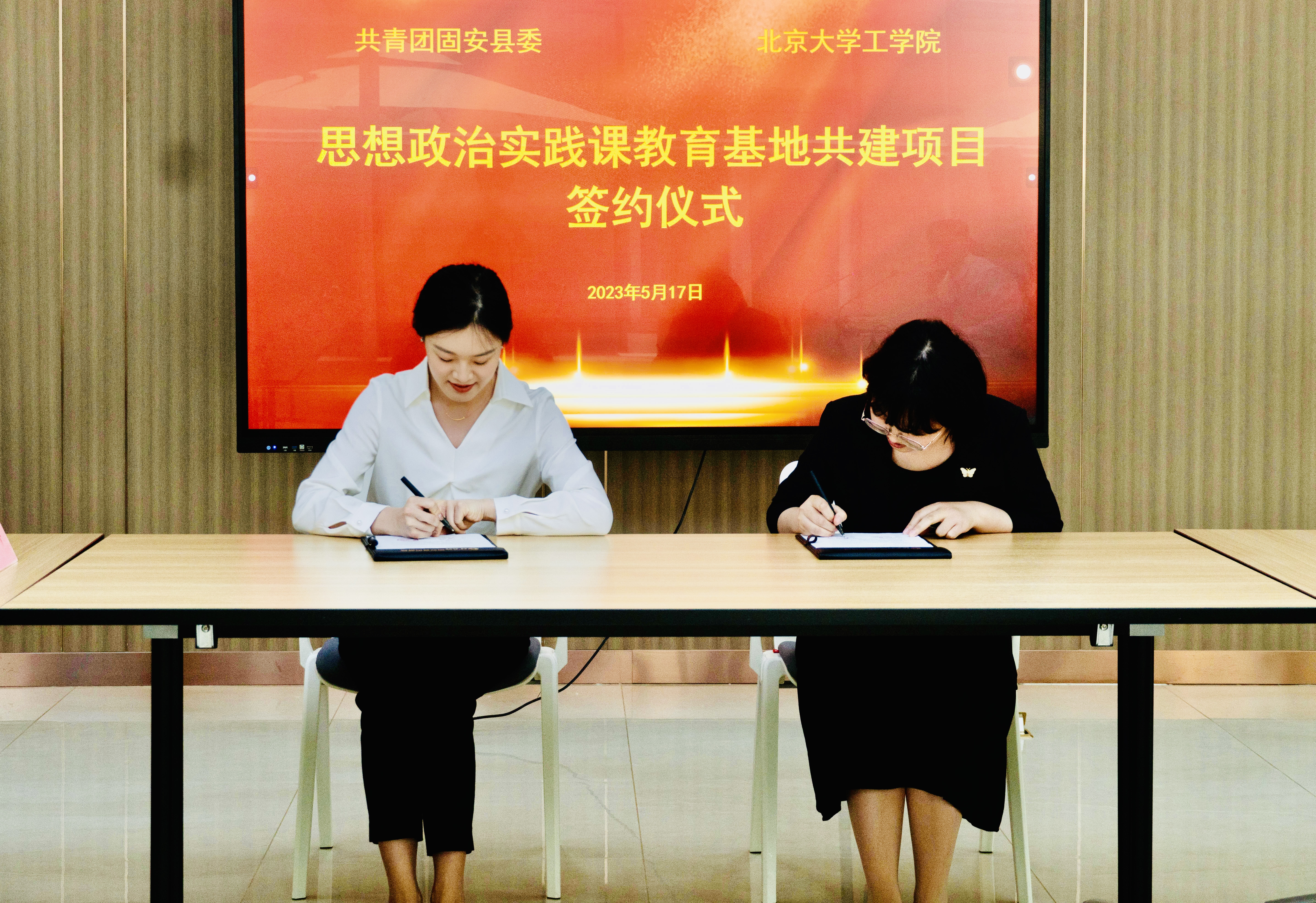 随后,伊照和闫纪旋签署william威廉中文官网与河北固安县共建思政实践课教育基地的合作协议。