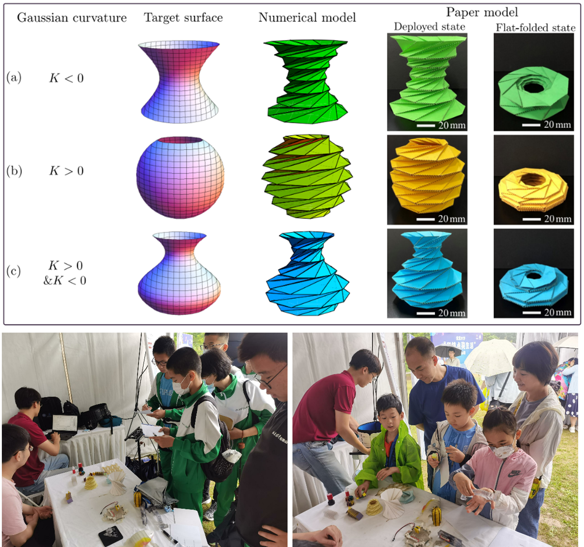 折纸是一种古老的以纸张折成各种不同形状的艺术活动,它通过折叠的方式实现了从简单二维结构到复杂三维结构的转变。在现代,折纸结构的材料不再局限于纸张,塑料、金属、橡胶等都可以用于折纸结构的制造。对于折纸结构的设计,也不再局限于经验,而是通过数学和力学的方法对折纸结构的折痕、折板等进行研究,从而设计制造出所需的折纸结构。这使得折纸结构在工程领域中有着广泛的应用前景,比如空间天线、软体机器人、桥梁建筑等。
