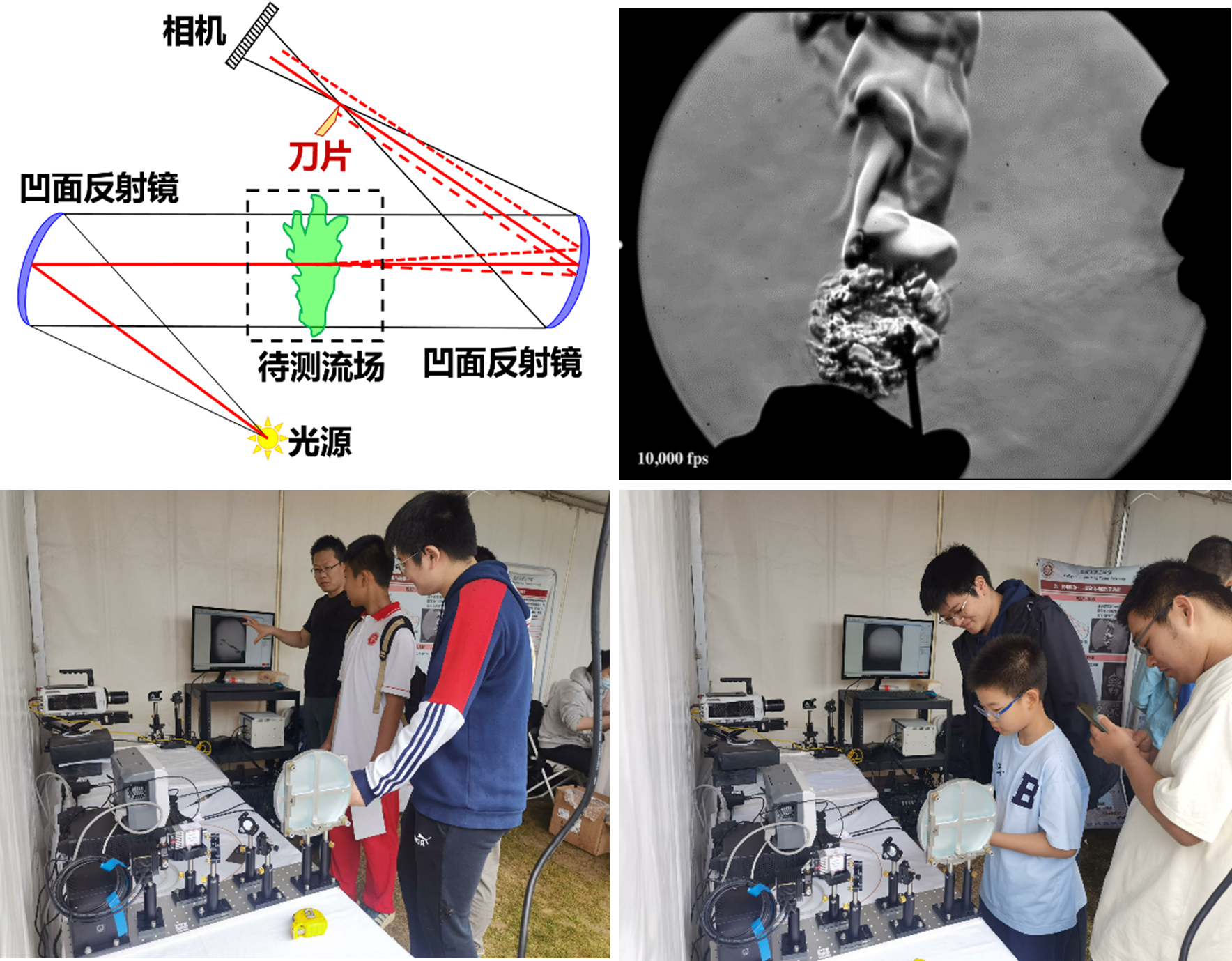 环境温度、压强的轻微变化会引发空气的流动,这种流动往往是隐形的,难以直接观察到。然而,我们可以通过特殊的光学测量手段,在透明流体中观察到密度或温度的变化,进而显示复杂的流动结构。这些方法可用于研究空气动力学、流体力学、热交换和燃烧过程,例如,观测蜡烛的热烟流和冲击波的形成过程。此外,我们还可以使用激光观测流动的气体分子的吸收与发射光谱信号,从而探测不同的气体成分。这些光学测量方法由于具有实时、高灵敏度、非侵入等特性,在现代航空航天工程、能源与动力、大气海洋与环境以及太空探索领域的前沿研究中有日益广泛的应用。