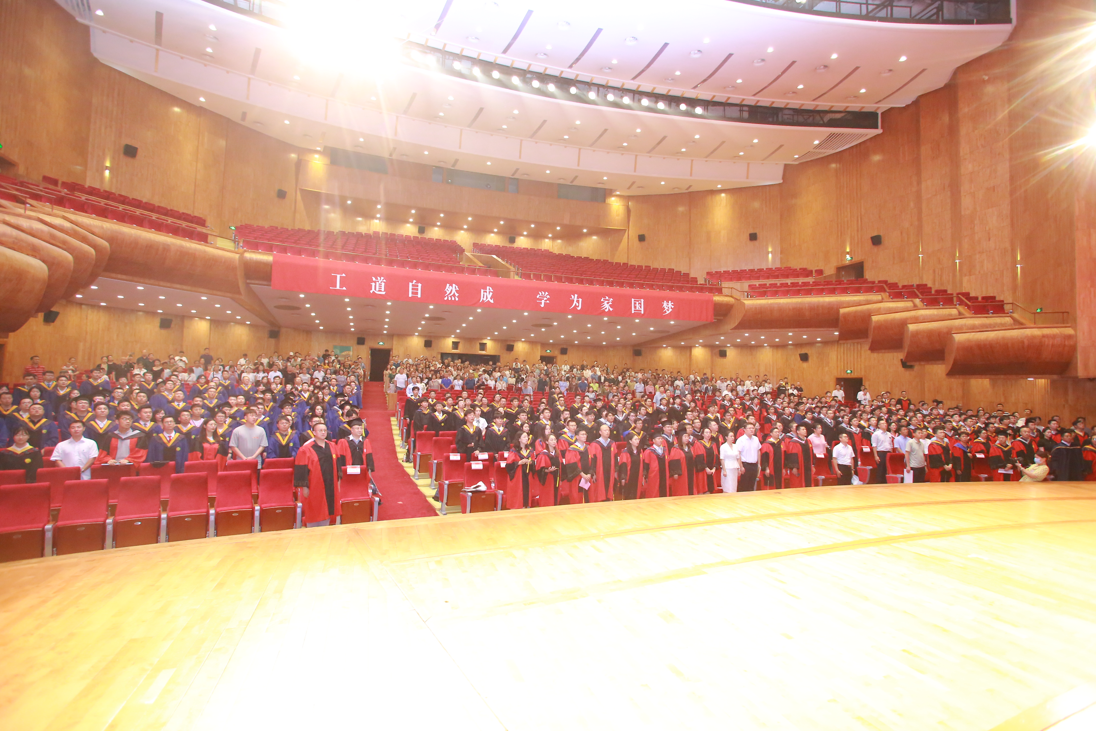 在庄严的国歌声中,毕业典礼正式开始。