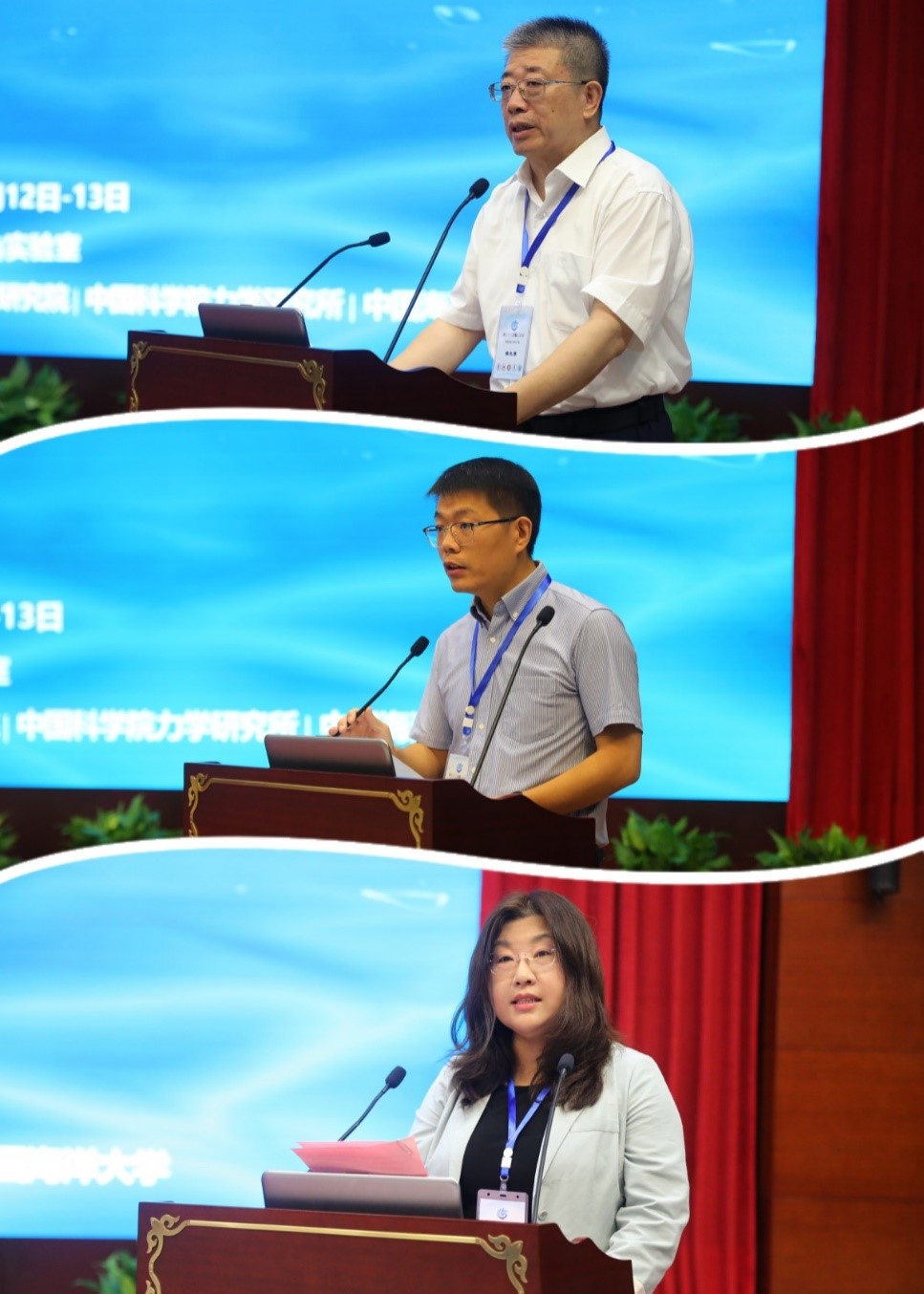 论坛开幕仪式上,潘克厚主任助理代表实验室致辞,对各位专家学者的到来表示热烈欢迎,他表示希望通过本次鳌山论坛为海洋强国建设建言献策,也为推动海洋前沿科学理论研究与工程技术创新注入新动能,为梳理我国海洋流体力学顶层战略需求,促进流体力学前沿学术成果与海洋科学技术及工程装备深度融合发展起到推动作用;孙岩副处长在致辞中表示,实验室自挂牌以来,在加快平台建设,聚集高水平人才团队,凝练梳理战略任务等方面取得了积极成效,希望本次论坛为梳理重大海洋科学问题,进一步凝练实验室使命任务提供支撑;段慧玲经理在致辞中表示,希望通过本次会议为进一步实现海洋流体力学、跨介质技术、海洋数字孪生前沿技术由“跟跑”向“并跑”和“领跑”提供科学依据,为“透明海洋”提供强有力的理论与技术支撑,为海洋强国战略贡献智慧和力量。