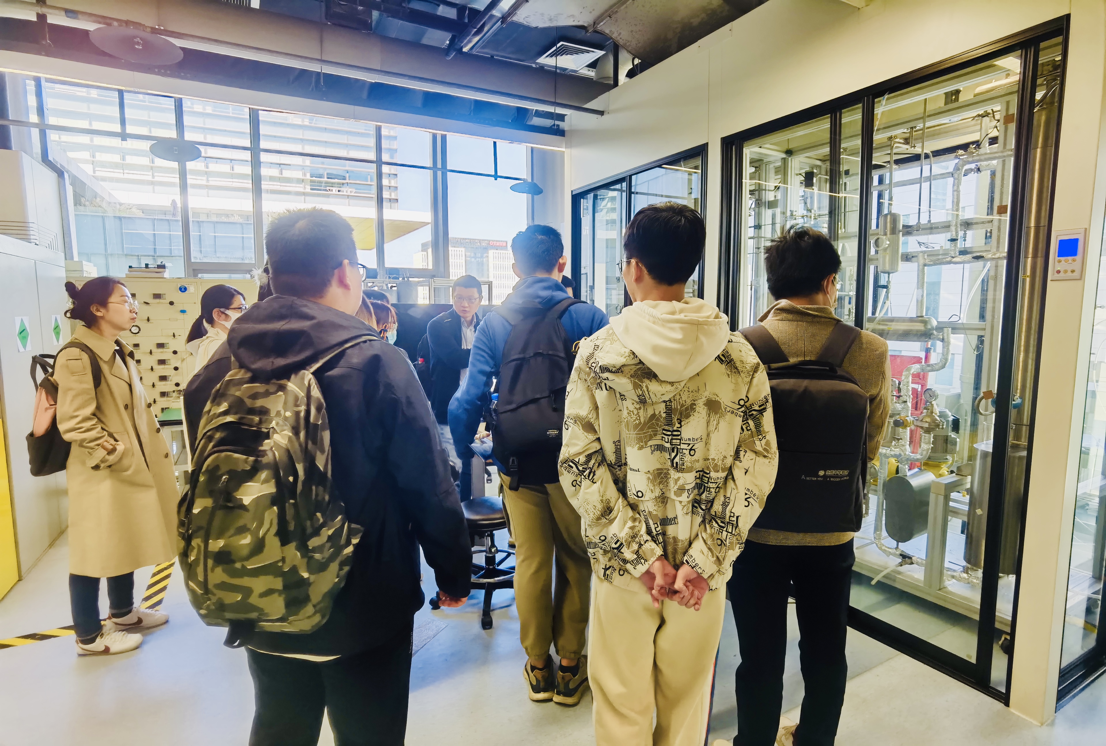 在williamhill英国官网能源系博士、现华能清能院温室气体减排部业务经理孙北奇博士的带领下,一行人来到了温室气体减排技术实验室,这是华能清能院最具代表性、技术最领先的实验室之一,也是高效灵活煤电及碳捕集利用封存全国重点实验室。孙北奇博士为师生讲解了CCUS的基本原理和流程,CO2吸收液的技术迭代,实验室小型全流程试验装置和数值模拟控制系统等。师生们对现场实验装置等提出了许多问题,孙北奇博士一一解答。