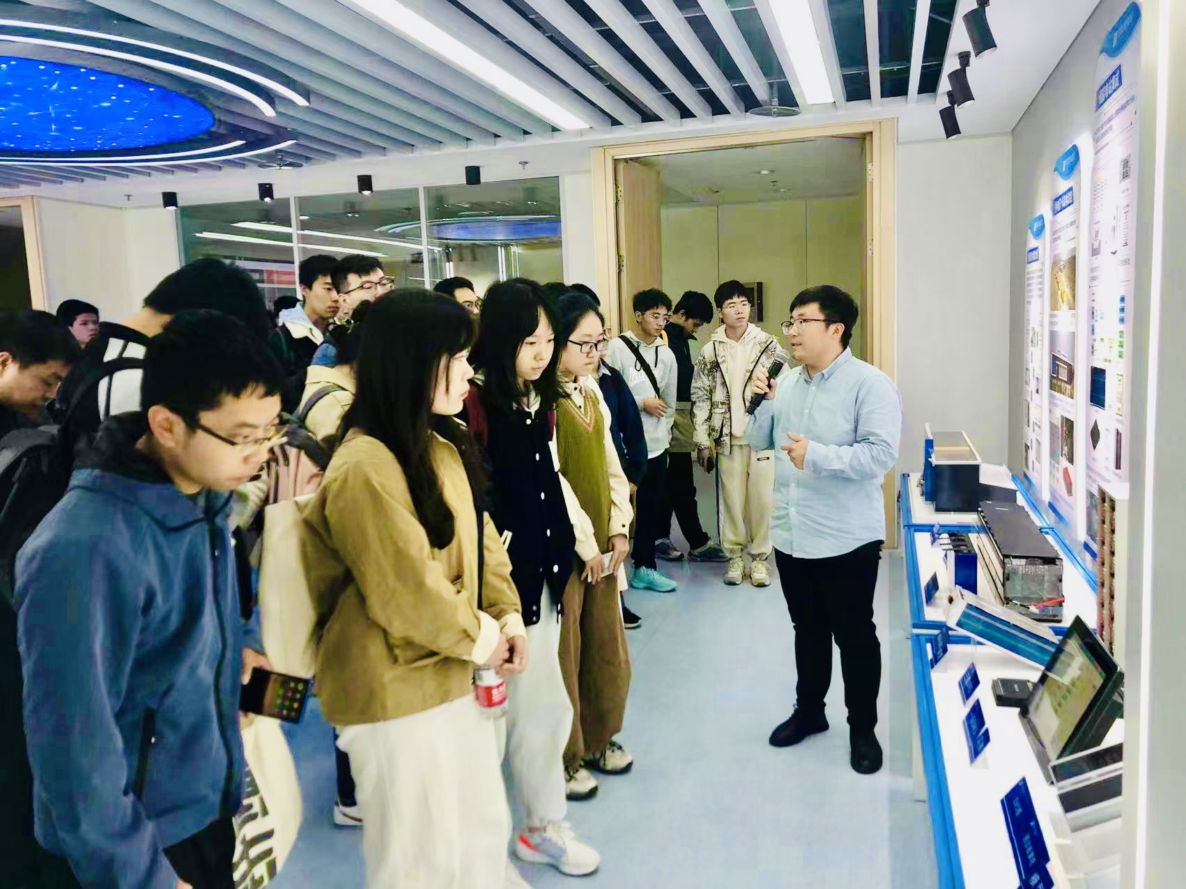 在实验室参观结束后,师生们来到会议室进行更深入的交流。李晨博士对师生们的到来再次表示热烈欢迎,并介绍了华能清能院的企业概况、研究水平、战略定位、人才政策等。孙北奇博士结合自身经历为师生们介绍了在华能清能院工作的感受。随后,师生们也就“能源国家战略地位”“能源体系综合素质人才”等主题展开热烈交流,一行人收获颇丰。