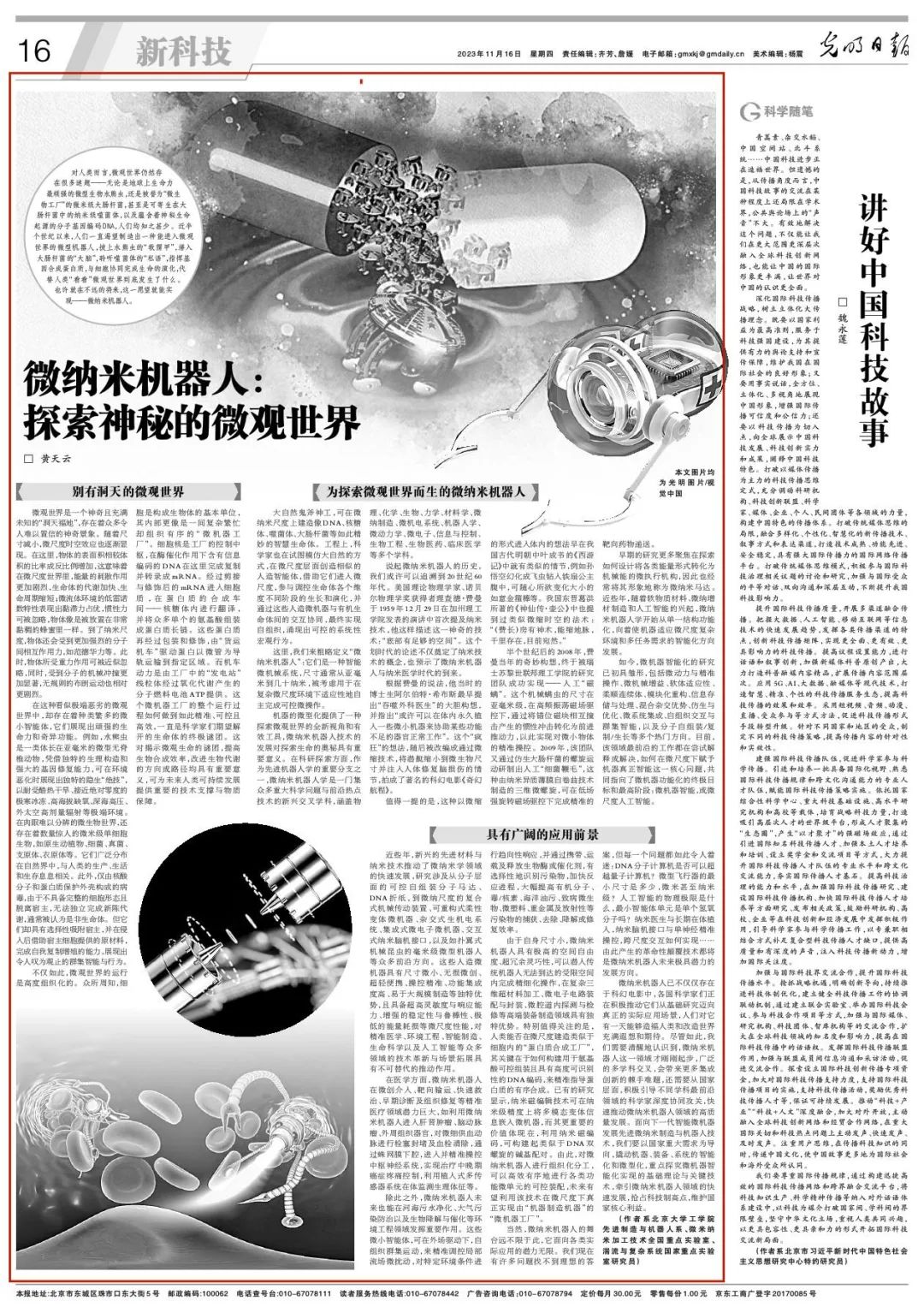 机器的微型化提供了一种探索微观世界的全新视角和有效工具,微纳米机器人技术的发展对探索生命的奥秘具有重要意义。在科研探索方面,作为先进机器人学的重要分支之一,微纳米机器人学是一门集众多重大科学问题与前沿热点技术的新兴交叉学科,涵盖物理、化学、生物、力学、材料学、微纳制造、微机电系统、机器人学、微动力学、微电子、信息与控制、生物工程、生物医药、临床医学等多个学科。