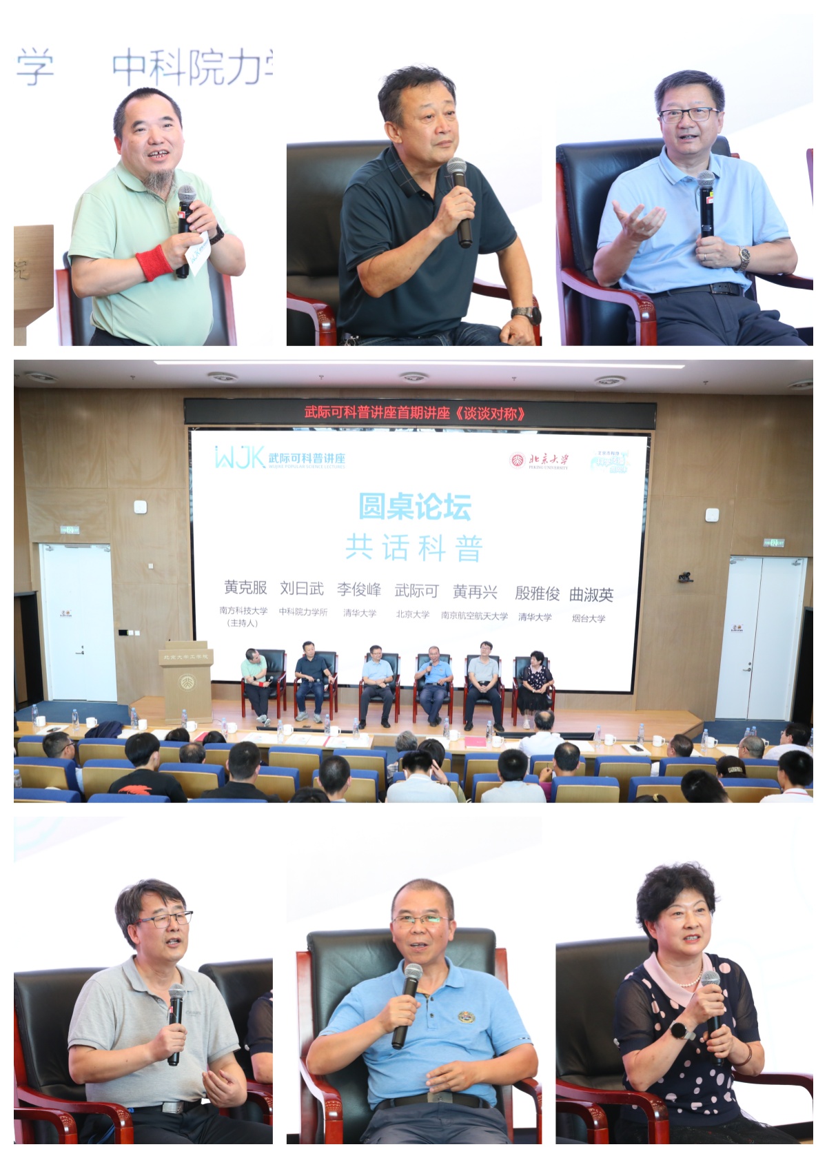 共话科普(从上至下、从左到右:黄克服、刘曰武、李俊峰、殷雅俊、黄再兴、曲淑英)