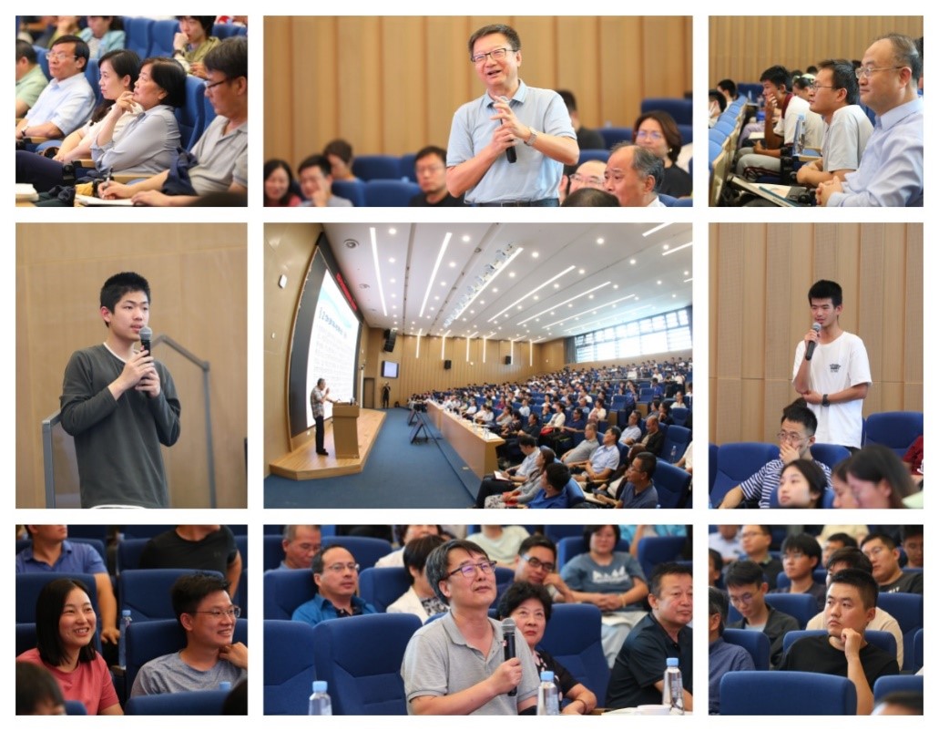 开幕式结束后,武际可教授作题为《谈谈对称》的首期报告。他从自然界中的六边形对称雪花引入,系统地介绍了人类学者从古希腊时期到现代对数学、物理、力学中对称现象的认知历程。他从人们直觉的形体对称介绍晶体的费多罗夫群;从代数方程的根式求解介绍伽罗华理论;进而介绍变换群和李群,以及作为对称的量纲与相似性理论和诺特定理。武际可教授首先介绍了自然界的简洁与秩序多数是基于对称发展的,而随机性与不确定性则是“对称破缺”的产物,正是对称与非对称现象之间的交织融合构成了我们身边奇妙壮观的世界。随后,武际可教授为大家讲解了数学家如何利用几何、代数群论等不同途径来描述并解释对称现象,以及物理学家和力学家如何利用对称原理来发现新的物理规律。武际可教授用生动的比喻和浅显易懂的语言,将许多复杂的科学概念、深奥的内容娓娓道来。同时,武际可教授穿插讲述了不同科学家的名人轶事,巧妙地将理论与现实联系起来,报告内容不仅富有学术深度,更充满趣味性,进一步激发了观众对讲座的兴致与热情。在讲座的最后,武际可教授勉励大家,要保持对科学的好奇心和探索精神,因为科学不只是实验室中的公式和数据,更是一种改变世界的力量。在90分钟的讲座中,武际可教授在耄耋之年仍坚持站立授课,其对科普事业的热忱与付出让台下的听众深受感动。武际可教授精彩报告结束后,会场爆发出雷鸣般的掌声,向他几十年来坚持传播科学致敬。报告结束后,进行了问答环节。观众们纷纷举手提问,问题内容涵盖了从专业理论到学术培养的方方面面。武际可教授进行了耐心细致地解答,现场交流气氛浓厚。