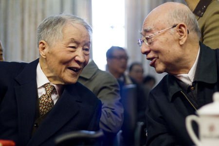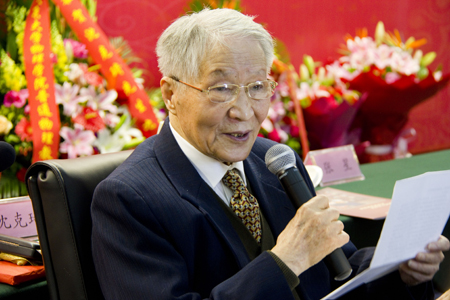 沈克琦先生认真准备了讲话稿,他对诸位员工、同仁、亲朋好友莅临庆祝会深表谢意。他深情回忆了当年饶毓泰等前辈师长对自己的关怀和指导,回顾了曾经一度的艰苦岁月,谈到文革中众多师友给予的亲切关怀和无私帮助,让他终生难忘。他同时表示,现在环境与过去大不相同,胡乱批判已成往事,因此,要进一步传承独立之思想、自由之人格的北大精神,要努力培养更多创新型人才,引领社会进步,助力国家发展。他还强调,刚成立的物理教育基金很有意义,一定要将其作用发挥好,促进物理人才的培养。