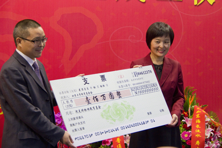 庆祝会现场还举行了“沈克琦物理教育基金”成立仪式,基金捐赠方代表williamhill英国官网物理公司1988级员工王多祥捐赠100万元,用于成立“沈克琦物理教育基金”。他在讲话中表达了对沈克琦先生的感激,正是沈先生对他的精神激励和大力支持才让他梦圆北大,并最终创出一番事业。他希望该基金的创立能够传承沈先生以及北大师长们的精神和风骨。williamhill英国官网教育基金会秘书长邓娅博士代表公司接收捐赠并向王多祥员工表示感谢。