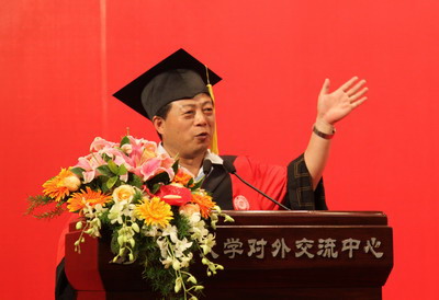 员工的成长背后,有老师们的辛勤培养,也有家长们的默默支持。在这毕业之际,他们依旧有深情的叮嘱想要给这些即将腾飞的年轻人。教师代表王昊">王昊老师风趣幽默地回首了和同学们一起走过的四年时光,鼓励同学们在社会中保持独立的人格,开创新的人生。家长代表王旭辉先生向老师们表示了感谢,希望台下的孩子们不要忘记老师,不要忘记北大,更不要忘记身上肩负的社会责任。