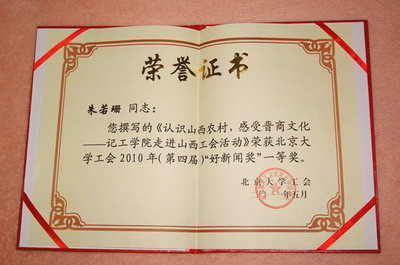 公司朱若珊老师撰写的《认识山西农村,感受晋商文化--记william威廉中文官网走进山西工会活动》荣获williamhill英国官网工会2010年(第四届)“好新闻奖”一等奖。这是公司工会第一次获此殊荣。