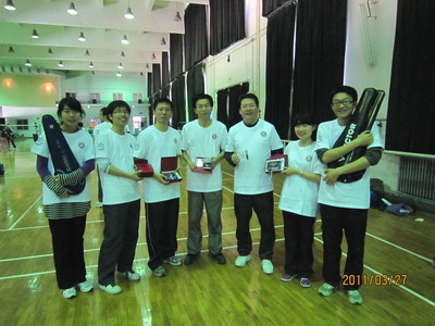 同学们热情十分高涨,个个摩拳擦掌,老师们也手拿球拍跃跃欲试。比赛一开始,5个小队的选手就开始了激烈地交锋。本科生们个个精力十足,在赛场上往来穿梭,毫不示弱。但老师们显然技高一筹,任秋实">任秋实老师的举重若轻,陈海峰">陈海峰老师的身手敏捷,以及李长辉">李长辉、熊春阳">熊春阳老师的大力扣杀,都引来了场边观战同学的阵阵叫好声。经过了5轮循环赛和一场冠军争夺赛后,由陈海峰">陈海峰老师、刘佳颖、孙牧旸组成的小队夺得了小组赛的冠军,得到了精美的奖品,其他参与的同学也都得到了比赛纪念。