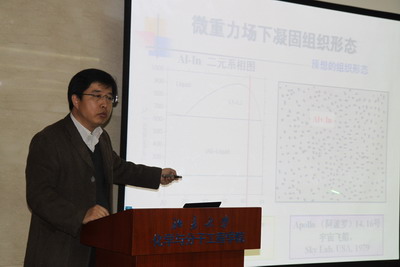 在报告中,刘兴军教授介绍了研究液相调幅分解反应的必要性和复合粉体材料的应用前景,阐述了复合粉体材料的“自组装”概念,展示了卵形复合粉体材料的分层结构,并应用流体力学的知识解释了形成两层或三层结构的机理。同时,刘教授还介绍了利用相场进行材料计算组织模拟的原理,由浓度场、温度场、流场等多种场组合成为相场,利用计算机模拟场变引起的相变,从而画出直观的图形图像。最后,刘教授提出,地球是一种特殊的卵形分层结构的模型,这一独特的视角将材料学科和地理学科紧密联系起来。由此,已知地球的七大主要元素,便可以在实验室中模拟出地球的形成过程,从而解释地球上的分层结构和元素分布等问题。