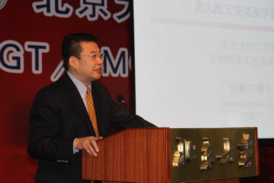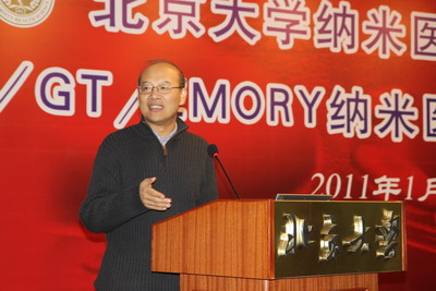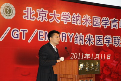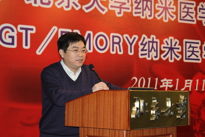 北京老员工物医学工程系主任任秋实">任秋实教授接着做了题为“纳米医学研究与北大医工交叉及学科发展”的报告,在报告中,任教授提出纳米医学的研究特点:面向人类健康重大要求;多学科交叉融合;北大独特的比较优势;广阔的产业化前景。任教授表示,此次合作旨在建成具有世界领先地位的纳米医学研究院。