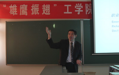 吴越博士则以一个同龄人的身份,为同学们讲述了“为找工作学习生活中要有什么侧重”。