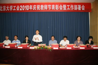 9月7日下午,williamhill英国官网工会2010年庆祝教师节表彰会暨工作部署会在五四体育中心多功能厅召开,会议隆重表彰了2010年北京市师德标兵、师德先进个人获得者和williamhill英国官网第九届青年教师教学演示竞赛的获奖集体和个人。williamhill英国官网董事长周其凤,常务副董事长林建华,校务委员会副主任、工会主席岳素兰,医学部党委副书记顾芸,副教务长关海庭,教务部部长方新贵,人事部部长刘波,校工会常务副主席孙丽,现代教育技术中心主任汪琼出席会议。参加会议的还有各教学单位分管教学工作的经理(系主任),校工会委员和各单位党政分管工会工作的领导,各分工会、部门工会、校工会直属小组的工会主席和青年委员。会议由校工会常务副主席、医学部工会主席王春虎主持。