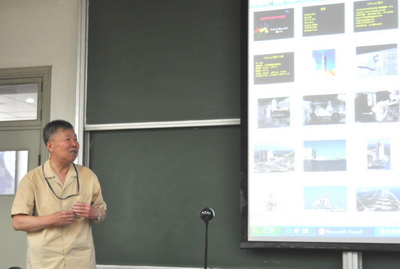 在同学们热烈的掌声中,聂玉昕研究员开始了精彩的演讲。聂老师按照航天科学技术的进展历程,从阿波罗登月讲起,详细描述了人类航天科技从航天飞机到和平号空间站,俄罗斯联盟号客运飞船,进步号货运飞船,再到目前最先进的国际空间站和哈勃望远镜,系统分析了现有人类航天技术的先进性和局限性,指明了未来航天技术的发展方向。接着,聂老师还介绍了我国航天技术的发展历程,和以及我国航天技术在严峻的国际形势中自主发展所取得的丰硕成果。聂老师还指出:未来我国航天技术的发展方向将是完善飞船与航天器的对接技术,为中国建立自己的空间站打下良好的基础。