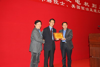 韩平畴主任代表材料系向王中林教授颁发了纪念证书,并再次祝贺他当选为中科院外籍院士。