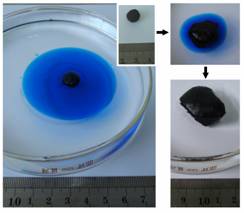 (右下)一个漂浮在水面上的海绵颗粒,可以吸收大面积的油污,同时自身膨胀到原来体积的几十倍。