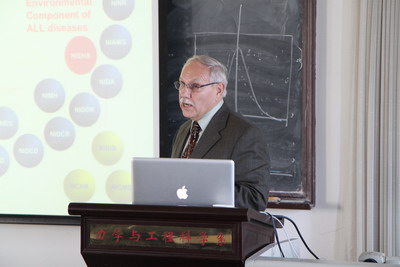 在两位教授的报告之后,美国NIEHS(National Institute of Environmental Health Sciences)SBIR/STTR(Small Business Innovation Research and Small Business Technology Transfer)项目负责人Jerrold J. Heindel给大家介绍了NIEHS这一机构的职责、使命以及正在资助的世界范围内的合作研究项目。他指出,NIEHS所关注的是由全球的环境原因所引起的健康问题,旨在提高公众的健康水平。众所周知,人类的所有复杂疾病的成因只有两种,一是基因,二是环境。因此,NIEHS资助的研究包括室外空气污染(可导致肺病、心血管疾病等)项目,室内空气质量项目,儿童哮喘/过敏项目等,纳米健康和安全项目,纳米技术研究项目等。其中他们格外关注儿童疾病,因为许多疾病始于子宫或生命最初几年,因此孕期是疾病预防可能的窗口。他希望能够与北大建立合作研究,共同推动人类健康。