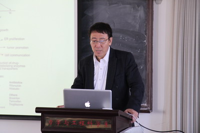Tian Yanan教授的报告题目是“Epigegetic Regulation of Pregnane X Receptor and Its Roles in Carcinogenesis”。他首先简要地介绍了表观遗传学的重要性,随后详细讲解了他 在孕烷受体PXR方面取得的进展,主要包括:1.PXR在药物代谢中的作用;2.PXR在癌症发生中的作用;3.NF-kB对PXR的调控机理。