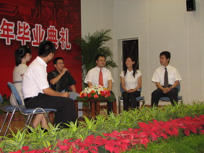 老师、已毕业的01级员工段伟、04级博士生陈思和05级本科生邓昊作为嘉宾接受了主持人许智菲和成名的访问。邓昊讲述了从入学之初褪去光环之后的彷徨到发现自己的兴趣所在而刻苦钻研的亲身经历;陈思的“坚持”带给她科研上的巨大收获;苏老师作为05级本科的班主任对大家4年的表现给予了充分的肯定并祝福大家在自己未来的人生之路上谱写出新的篇章;毕业生的师兄、01级本科毕业生段伟用三点概括了在william威廉中文官网4年的收获,即坚忍不拔的毅力、清晰的逻辑思维能力和温暖如大家庭般的公司氛围,鼓励学弟学妹再接再厉。