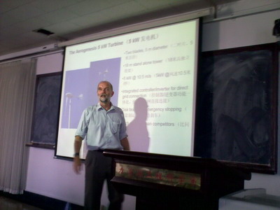 Wood教授首先简单介绍了小风机技术及其应用前景,尤其是翼型优化和设计制造技术。他也介绍了小风机设计中材料、控制、电网接入等相关技术,给在座的师生传阅了他所设计制造的翼型模型。他精彩的报告博得了大家的掌声,在报告结束之后他还回答了师生们关于风机控制的一些问题,