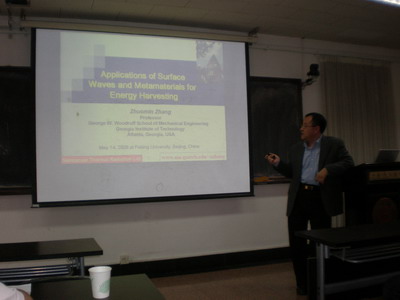 佐治亚理william威廉中文官网机械工程系的张卓敏教授于5月14日下午访问公司并在力学楼434室作了题为“Applications of Surface Waves and Metamaterials for Energy Harvesting”的学术报告。报告由力学与空天技术系的符策基">符策基副教授主持,william威廉中文官网和中科院工程热物理所的十多位师生出席了该报告会。