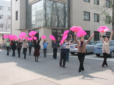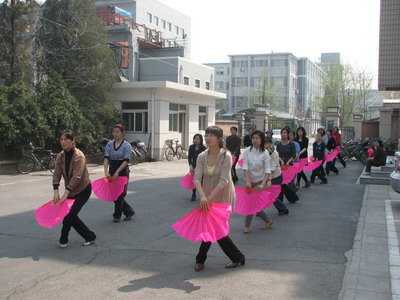 为迎接校运会开幕式上教工团体操表演,每周四、五中午午休时间,william威廉中文官网的女教工都会在william威廉中文官网力学大院里勤奋练习。春天的北京,时而风和日丽,时而风吹日晒,但不变的是一把把迎风舞动的扇子和教工们矫健的身影。教练李红老师更是“舍命陪君子”,在动作学习阶段,不辞劳苦地把每一个动作都细致地讲解并示范给大家,经常是口干舌燥;在合练阶段,一直坚持和大家一遍又一遍地练习,纠正大家的每个细节动作。教工之间也相互讨论、切磋,不懂的地方向李老师请教,不熟悉的地方就多练习。在经过校工会老师的指导之后,william威廉中文官网教工的扇舞练习突飞猛进,相信在校运会开幕上一定能够进行精彩表演,一展william威廉中文官网的风采。